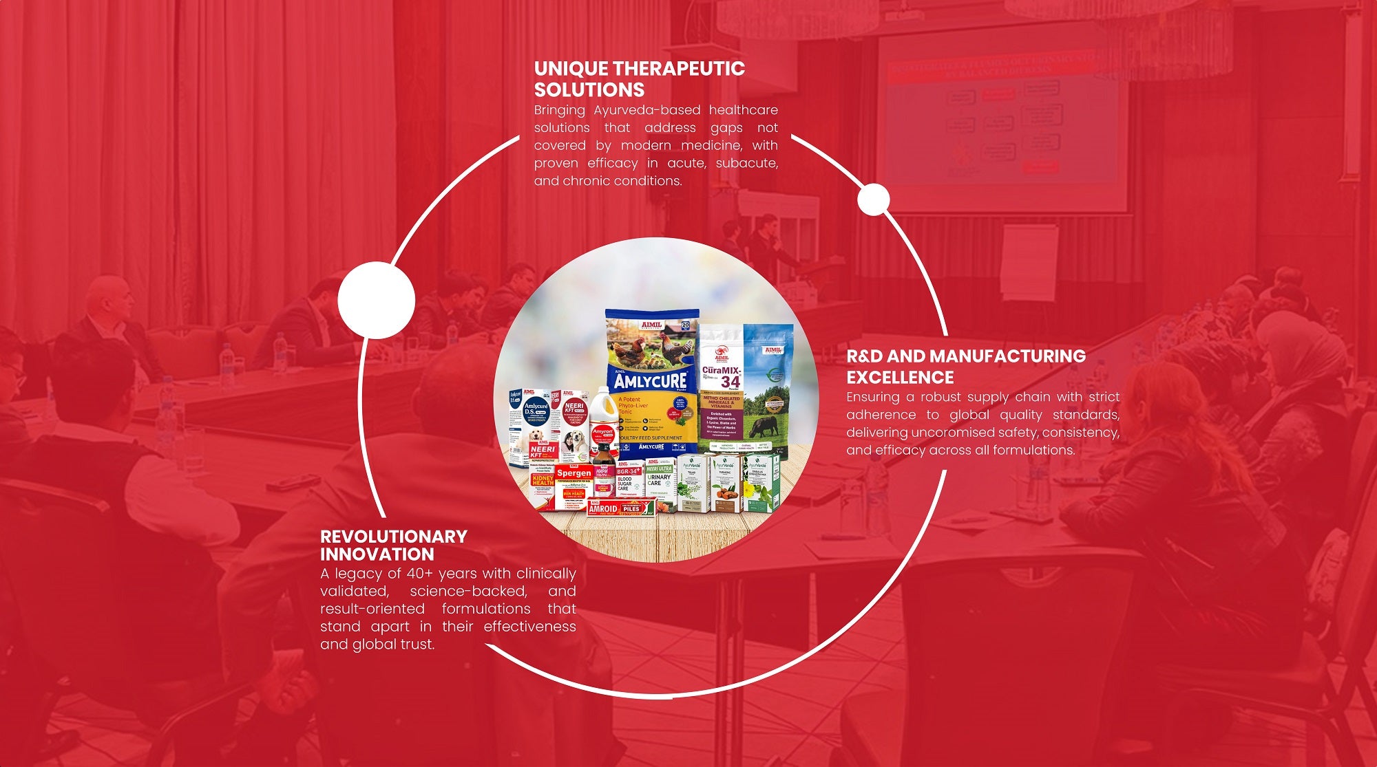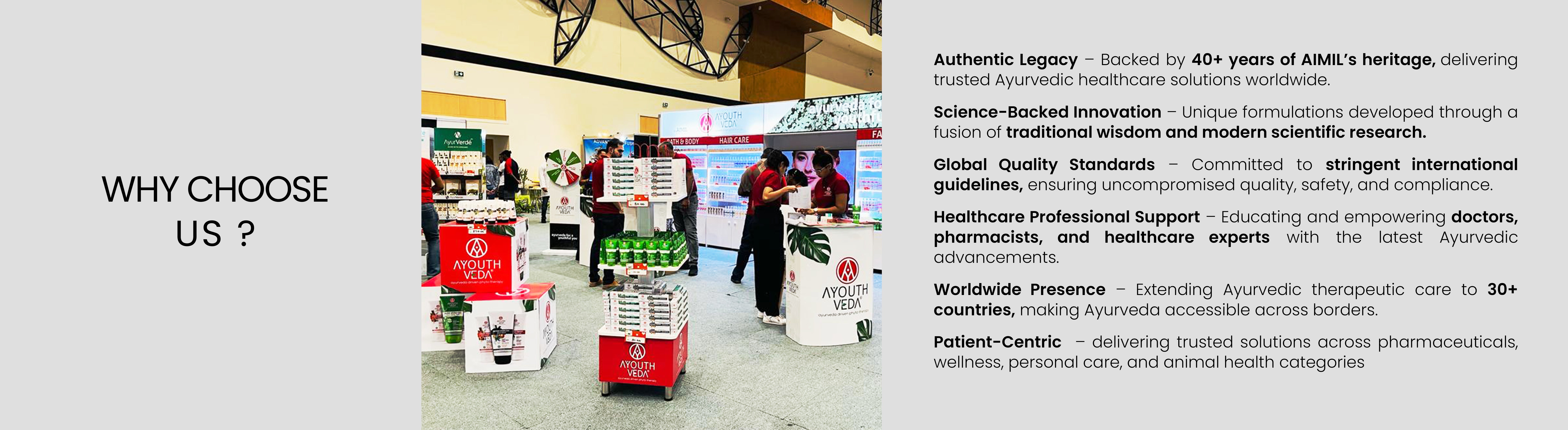 AIMIL Global, a science-driven Ayurveda company, with a team of innovators, researchers, and professionals united by a mission to deliver validated Ayurvedic formulations to worldwide. With a presence in 50+ countries and a dedicated team of 100+ specialists are combining passion with precision to create solutions that improve lives every day. Defined not only by our products but by our unwavering commitment to quality, integrity, and care.