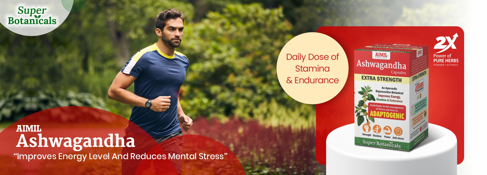 AIMIL Ashwagandha Capsules help improve energy, stamina, and endurance while supporting strong immunity and better mental health. They also act as a natural stress reliever to keep you calm and balanced.